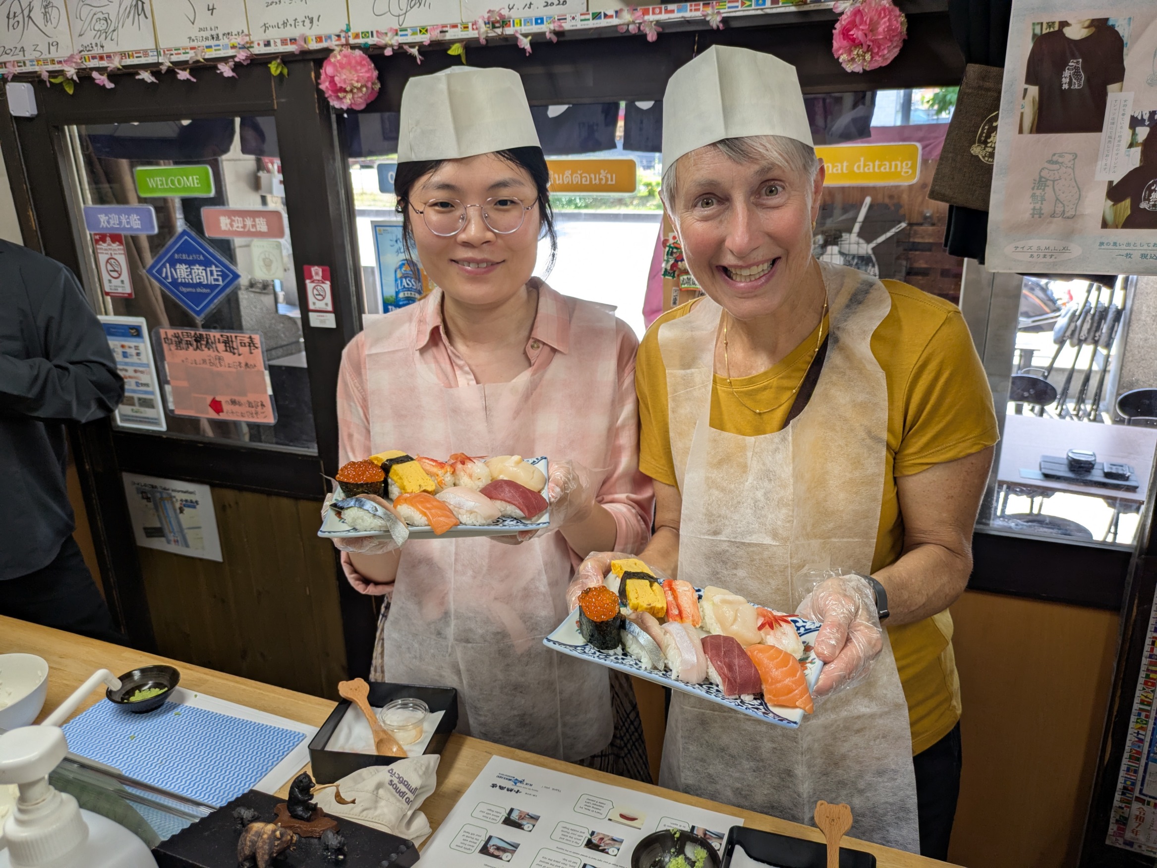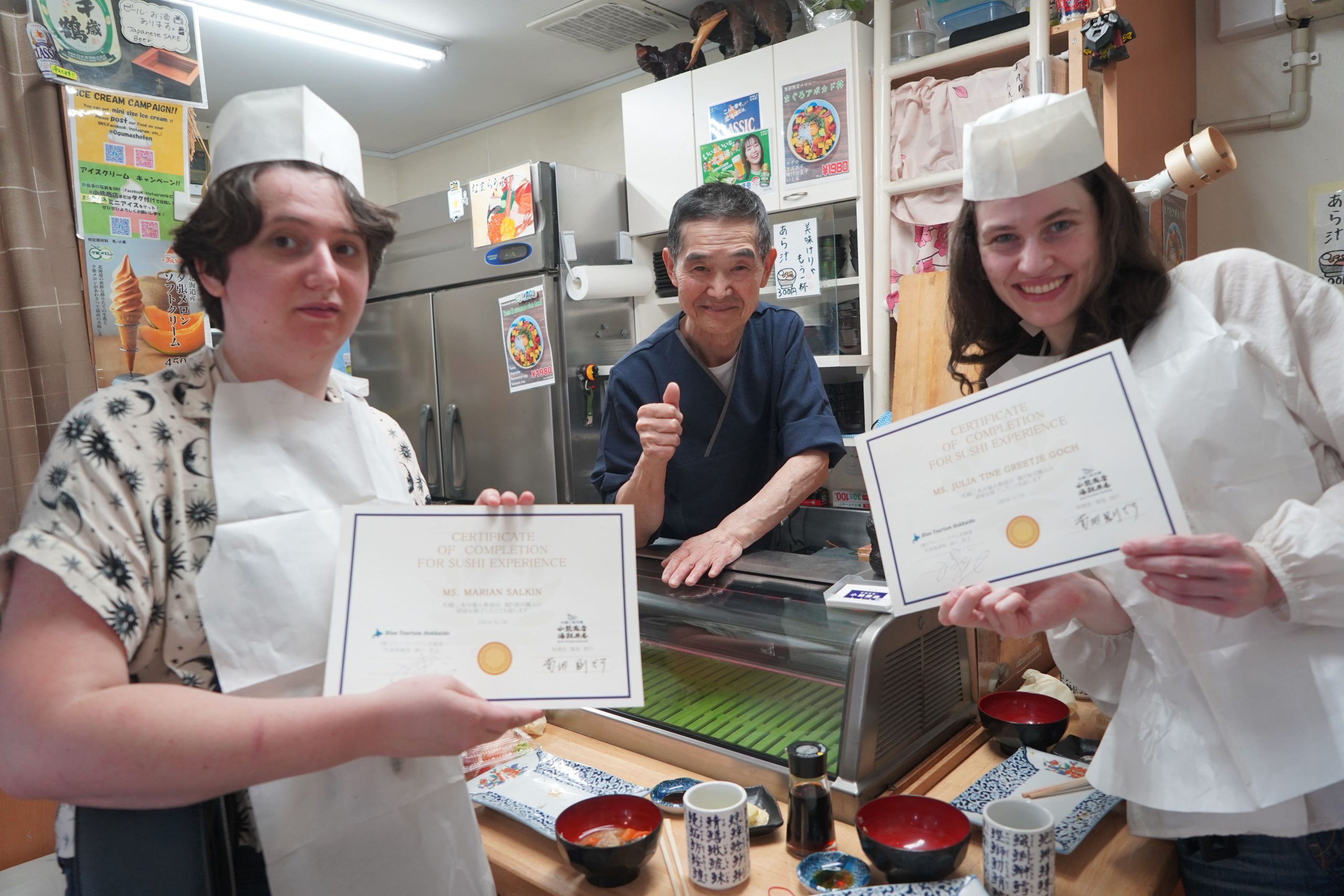 Includes 10 pieces of nigiri sushi, fish soup, ingredients, apron, sushi chef training fee, and a certificate of apprenticeship to a nigiri sushi chef.